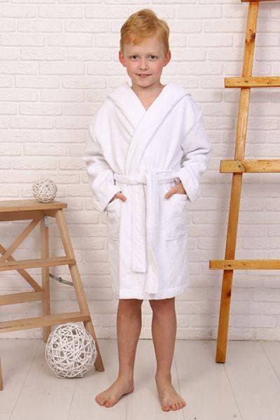 Халат детский махровый "Элит" с капюшоном, цвет: 024-Белый, р. 98/104,