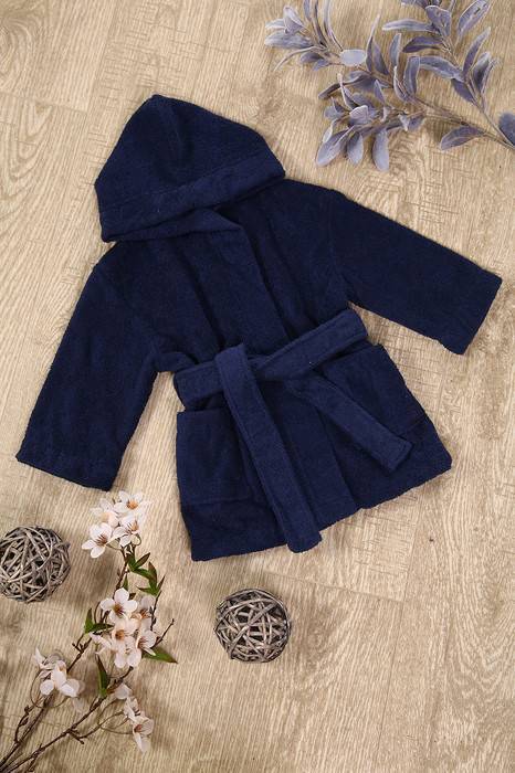 Халат детский махровый "Элит" с капюшоном, цвет: 761-Темно-синий, р. 128/134,