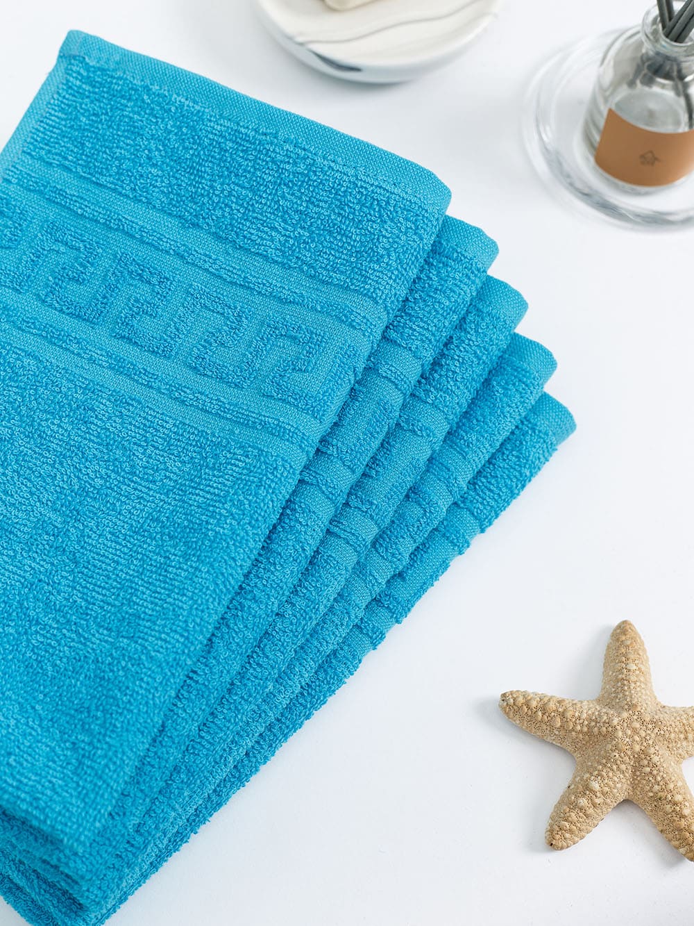 Полотенце махровое с греческой каймой, бирюза, 30х50, 380 г/м2, Узбекистан