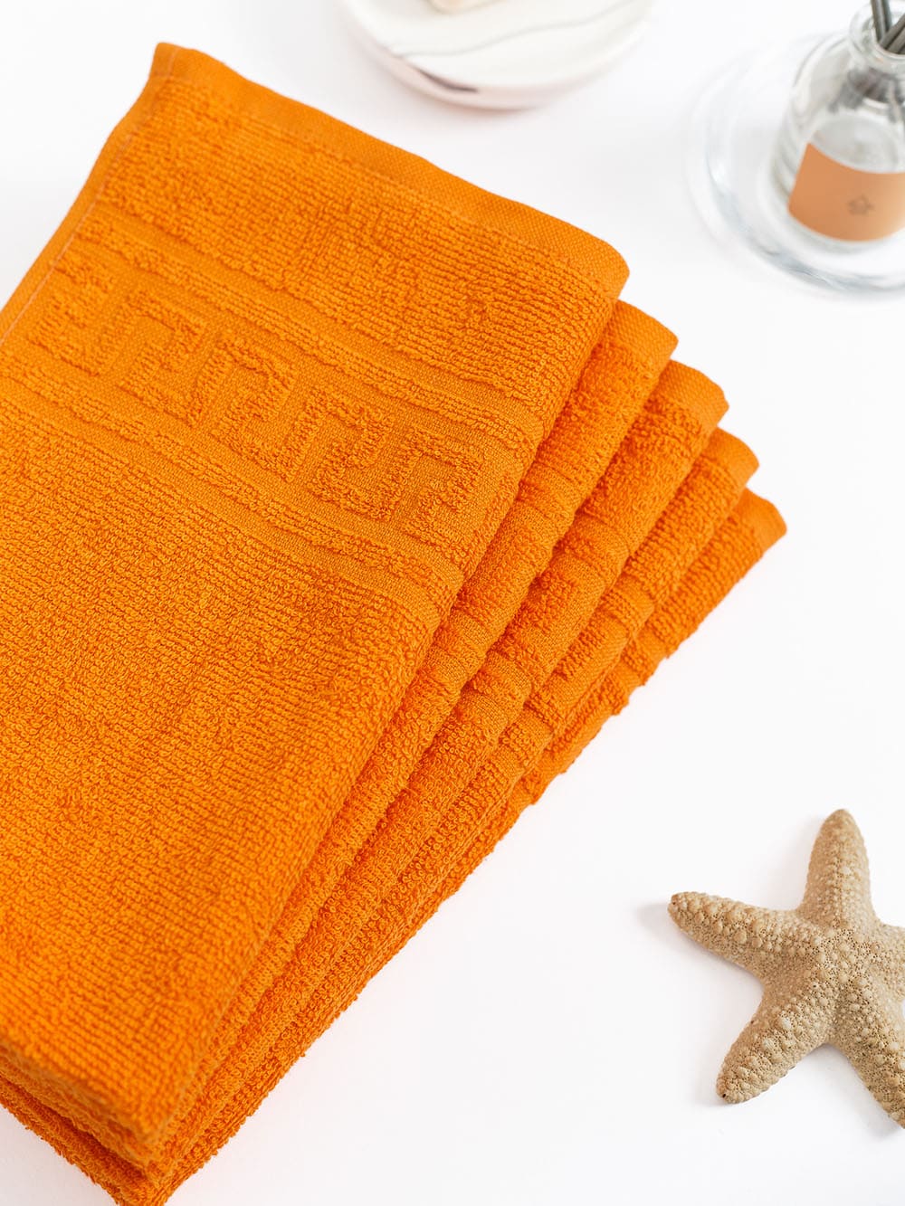 Полотенце махровое с греческой каймой, оранжевый апельсин, 40х70, 380 г/м2, Узбекистан