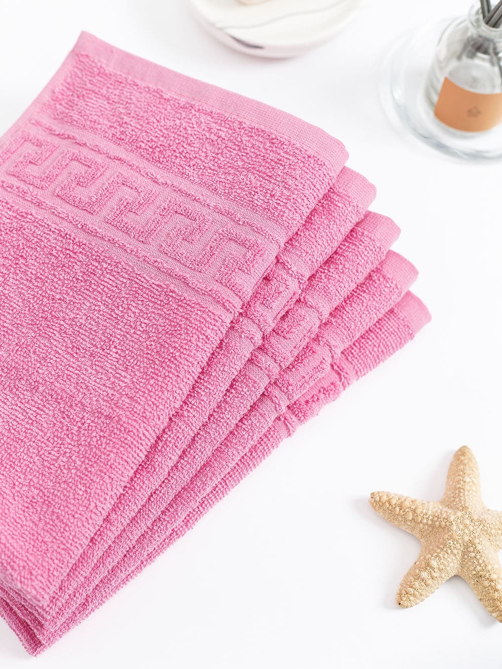 Полотенце махровое с греческой каймой, ярко-розовый, 40х70, 380 г/м2, Узбекистан