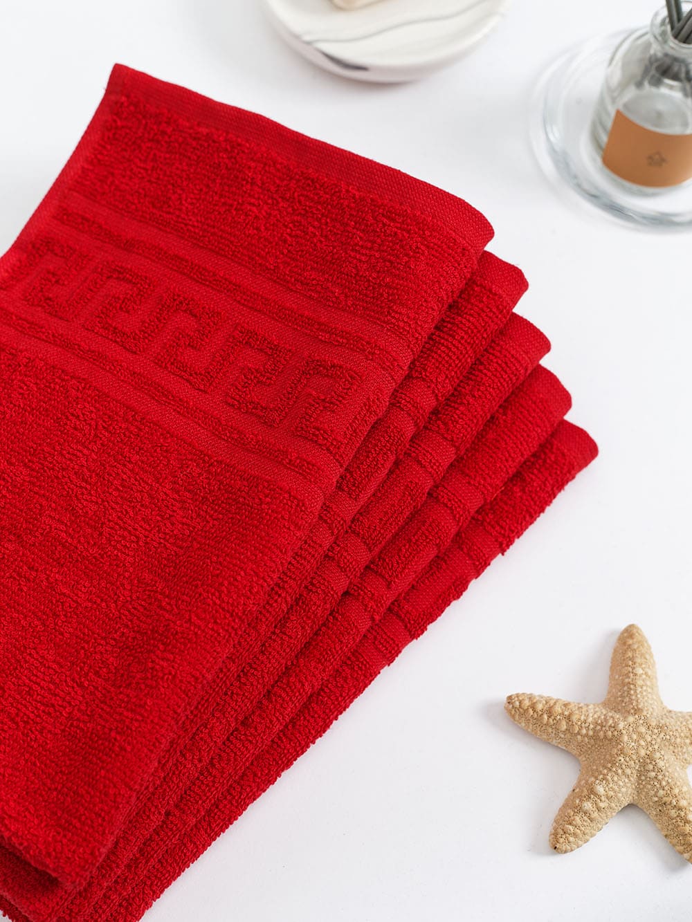 Полотенце махровое с греческой каймой, красный, 50х90, 380 г/м2, Узбекистан