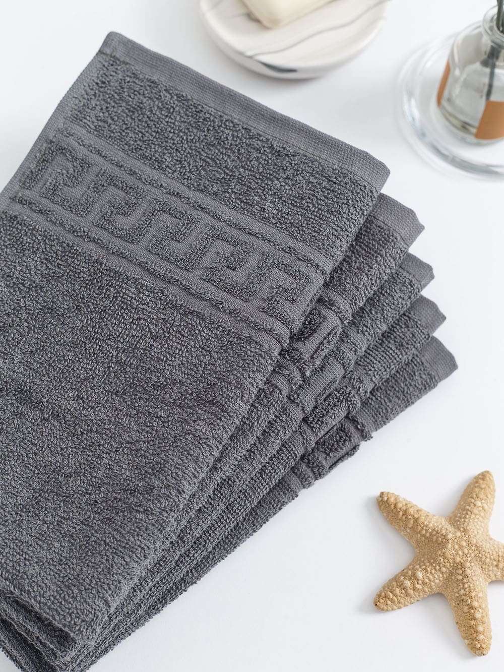 Полотенце махровое с греческой каймой, серый, 50х90, 380 г/м2, Узбекистан