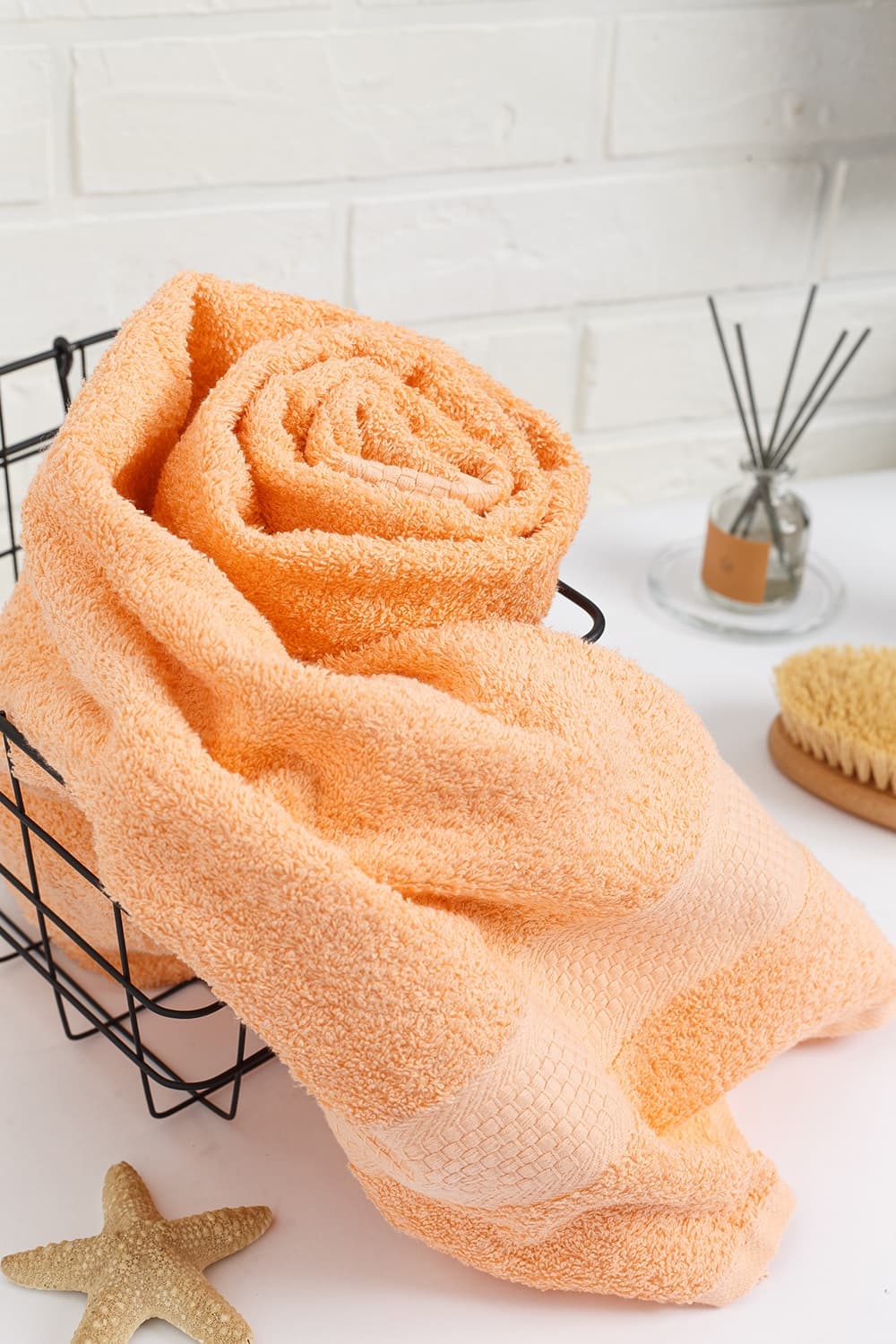 Полотенце махровое пляжное с бордюром соты, персик, 100х150, 400 г/м2, Узбекистан
