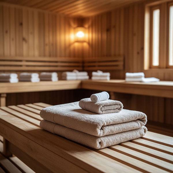 В сухом жаре сауны главная задача полотенца или простыни — быстро впитать пот. Поэтому здесь вне конкуренции махровые изделия из длинноволокнистого хлопка. Их ворс создает воздушную прослойку, обеспечивая дополнительный комфорт. Цветовая гамма может быть спокойной, классической, так как основная нагрузка — это пот, а не хлорка в воде.
